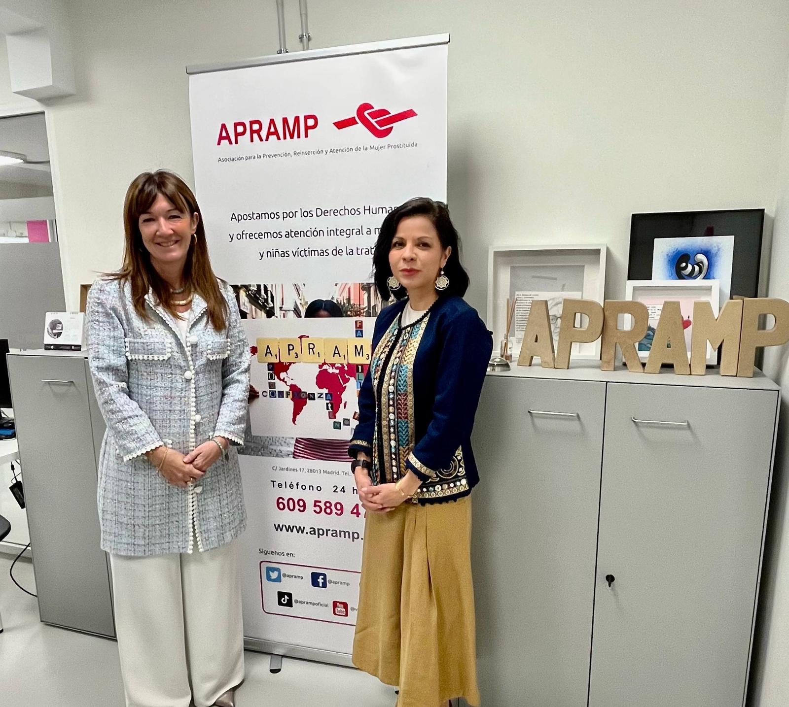 Hoy, APRAMP y Fundación Carolina hemos celebrado una reunión de trabajo para fortalecer la colaboración de ambas entidades en la lucha contra la trata de mujeres y niñas. Se celebró una reunión entre Rocío Mora, directora ejecutiva de APRAMP, y Érika Rodríguez Pinzón, directora de Fundación Carolina.