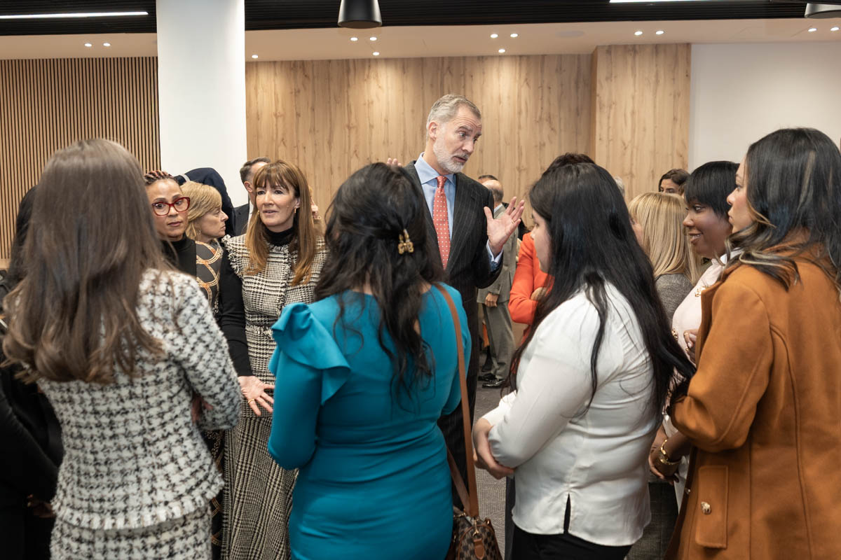 El acto de clausura contó con la presencia y el acompañamiento de Sus Majestades los Reyes, Felipe VI y Letizia, junto a la ministra de Igualdad, Ana Redondo, y el Rector de la Universidad Rey juan Carlos, Abraham Duarte Muñoz, quienes compartieron tiempo con las supervivientes tras la entrega de diplomas. Para APRAMP y para las propias mujeres, la presencia de los Reyes supone un reconocimiento institucional de enorme valor, que visibiliza su esfuerzo, su proceso de recuperación y la importancia de promover oportunidades reales de inserción sociolaboral. Su asistencia refuerza el compromiso de la sociedad y de sus instituciones con la lucha contra la trata y con el derecho de todas las mujeres supervivientes a una vida digna, libre y con futuro.
