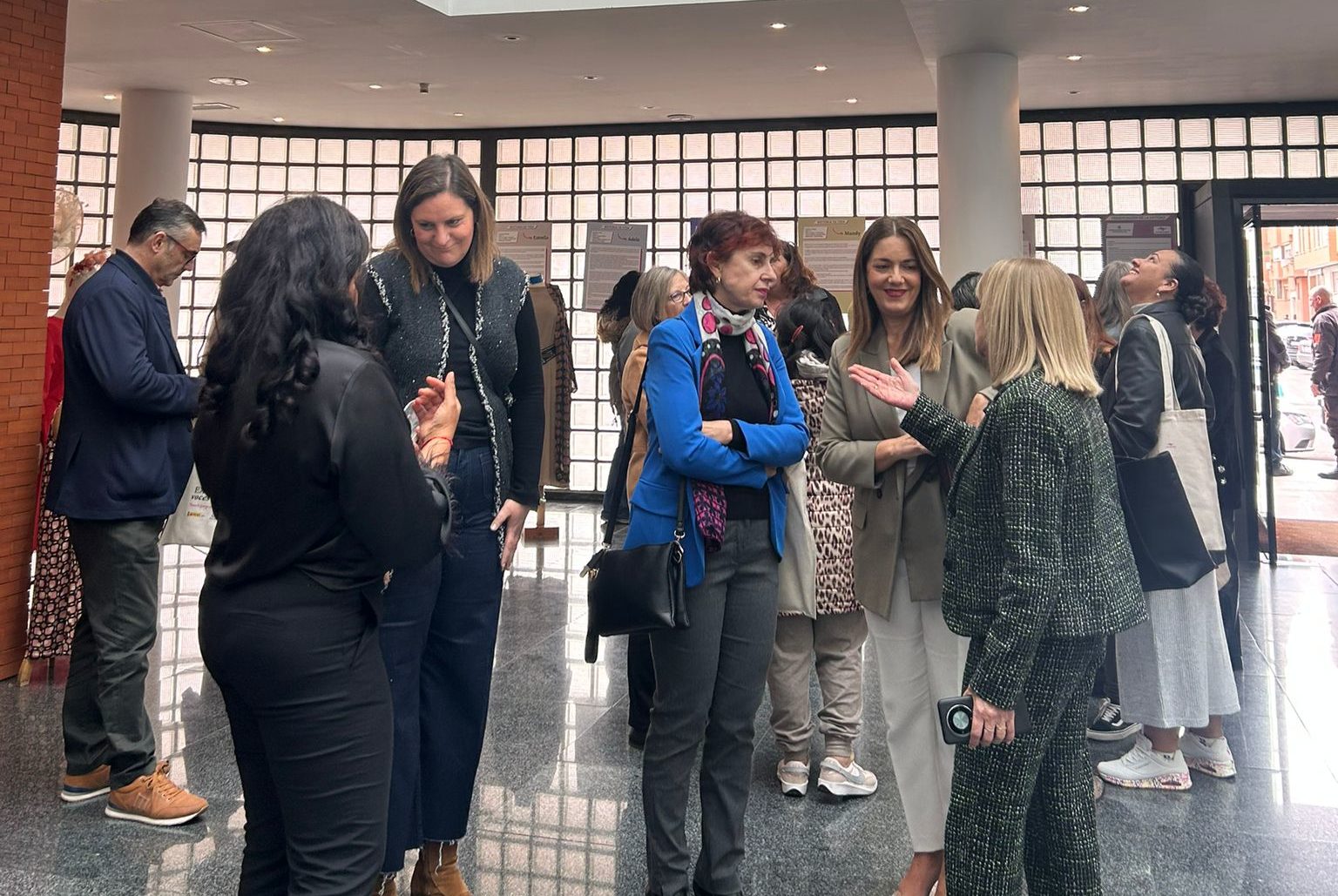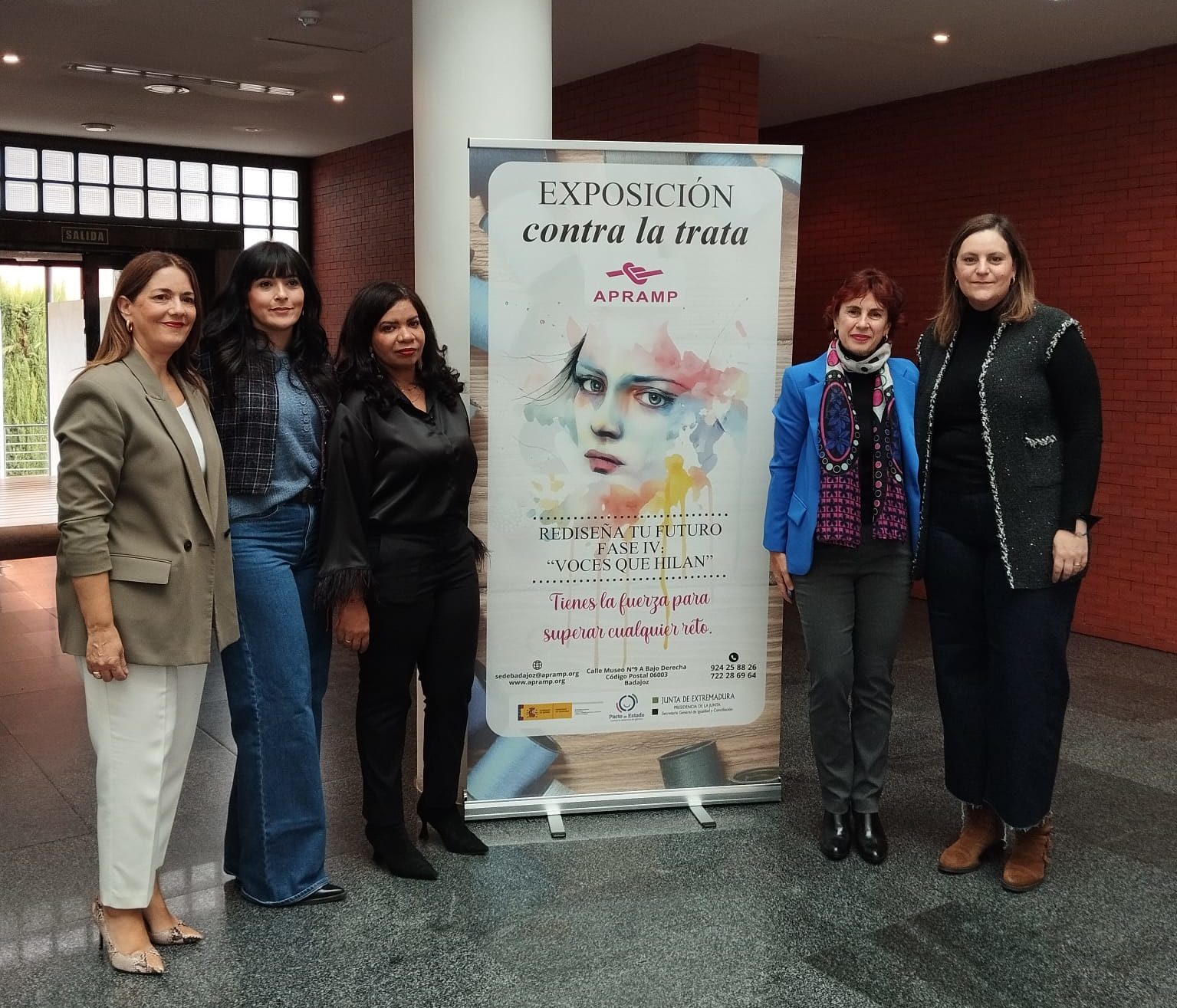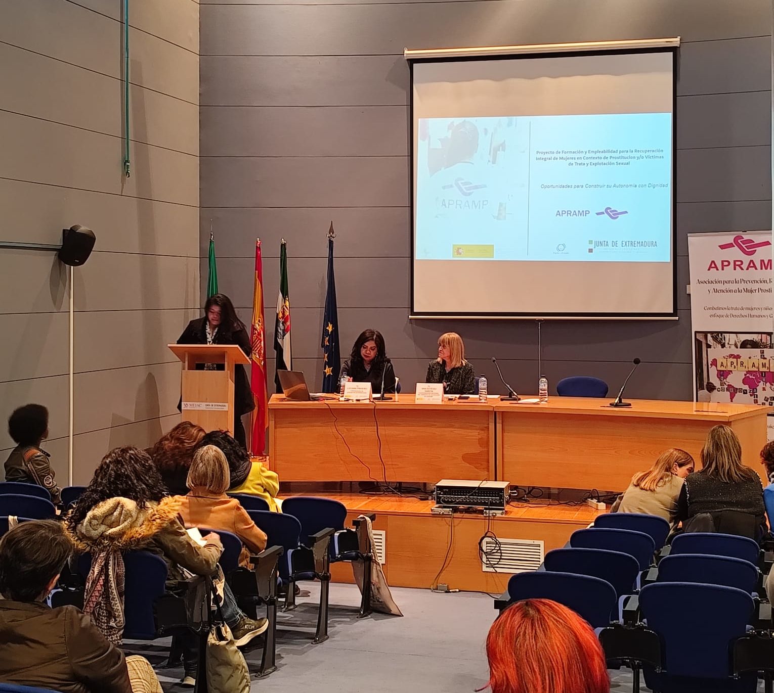 Previa a la exposición se ha desarrollado una Mesa institución en la que han participado Luciana Pinheiro, coordinadora de APRAMP en Badajoz (Extremadura), María del Ara Sánchez Vera, Secretaria General de Igualdad y Conciliación de Junta Extremadura, y Ana Estévez, Coordinadora de la Unidad Móvil.